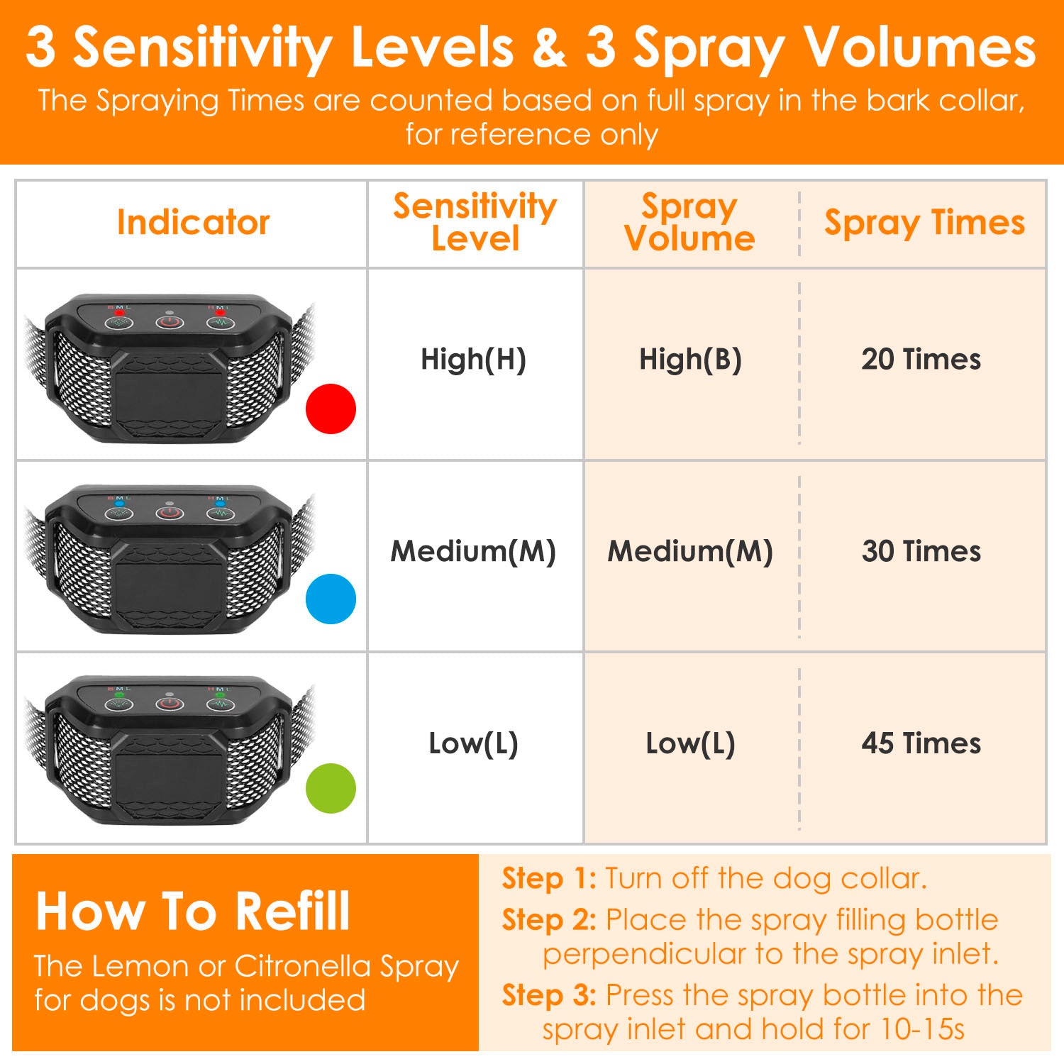 Stop unwanted barking safely with the Citronella Bark Collar for Dogs. This humane, shock-free collar uses a gentle citronella spray to deter barking, making it suitable for small, medium, and large dogs. With an IP65 waterproof design, it’s perfect for indoor and outdoor use. Comfortable, adjustable, and effective, this collar helps train your dog while keeping them safe and stress-free.